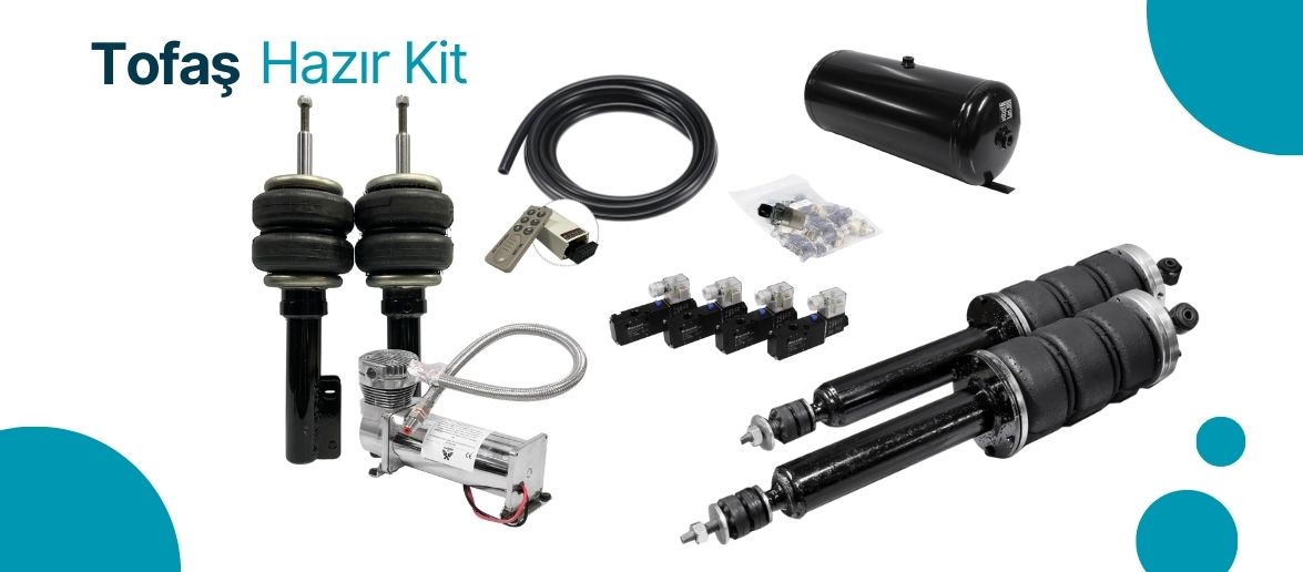 -Ön arka bağımsız-Tek kompresör -Valfler-Şartel-Paslanmaz hava tankı-Dans modlu kumanda -Hortum ve bağlantı rekorları dahil-Önler arka 2, ..